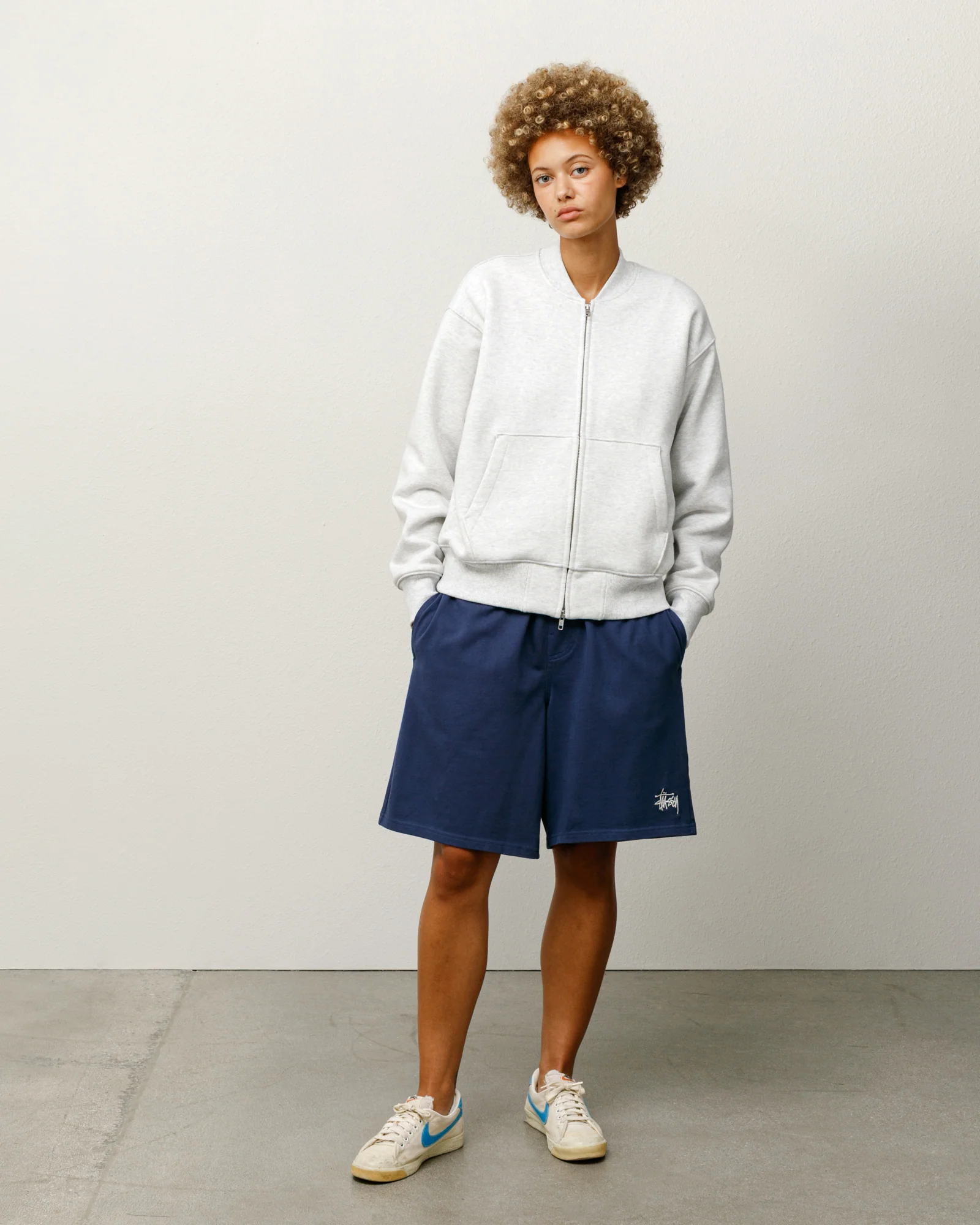 - Stüssy basic logo embroidery at left leg