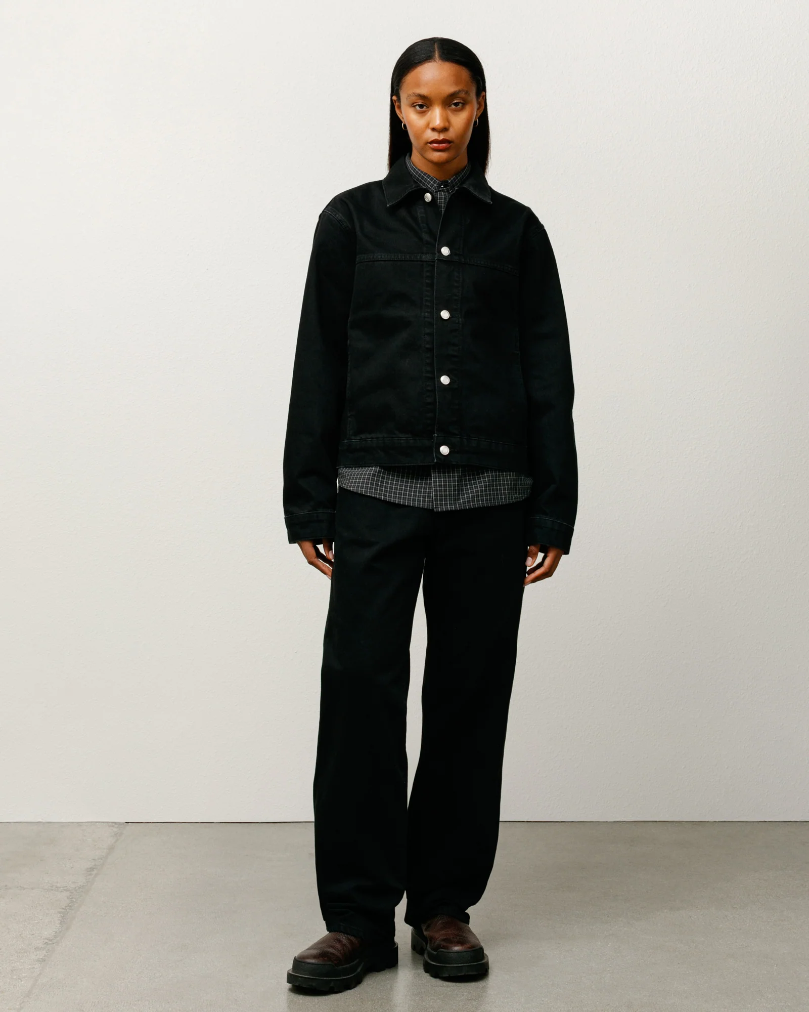- Boxy cut with branded nickel shank hardware, gold topstitching and a suede Stüssy logo patch